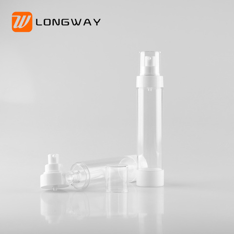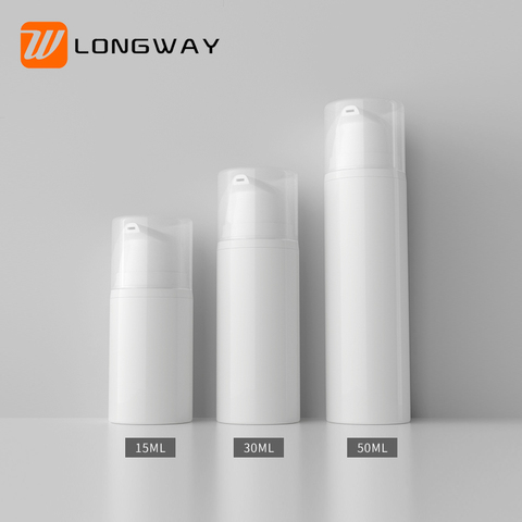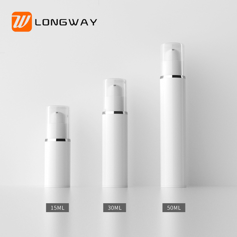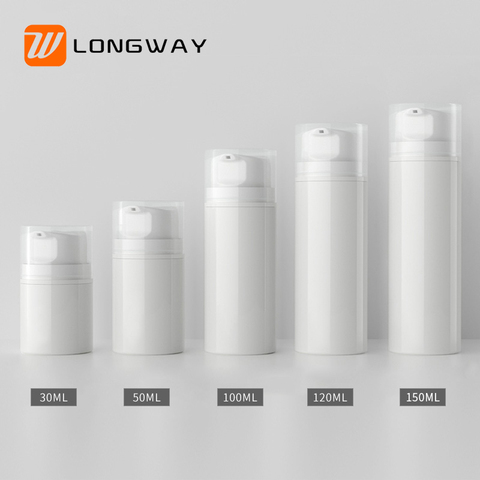 Emballage cosmétique personnalisé Longway bouteille de pompe de lotion en plastique vide bouteille de pompe sans air blanche avec distributeur de pompe de lotion